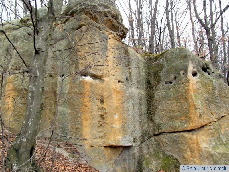M-am calmat după un timp, chiar și distrîndu-mă de Călinul pe care-l auzeam, undeva sub drum, războindu-se cu țepii și vorbind singur. Privind în jur, peste drum de locul în care mă așezasem, văd un copac gros, cu o săgeată mare și vizibilă scrijelită pe trunchi, ce arăta cu vîrful înspre pămînt. Cu siguranță nu era semn de pădurar, iar în momentul ăla îmi pică fisa. Peștera e chiar sub copac. Trec, așadar drumul, cobor sub el, iar gura grotei căutate se deschide chiar în fața mea. Îmi venea să rîd. Urc înapoi la drum și mă pun din nou în fund. Peste vreun sfert de oră apare și Călin, vîlvoi, cu ochii-n flăcări. Apropiindu-se de mine, îi arăt doar, fără vorbă, copacul cu semnul pe el. Încă nu cuplează. Îi zic doar așa, într-o doară: ”coboară!”. Apoi au urmat doar niște cuvinte alese, pe care nici chiar eu nu le pot reda.