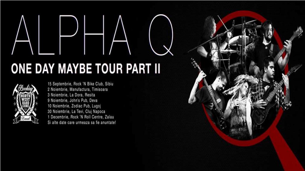 ALPHA Q, respectiv MeeRah, Waqas, Mãdãlin, Zsolt și Dani concertează sâmbătă, 1 decembrie, de la ora 20:00. Cei patru sunt o trupă de rock din Sibiu, un amestec echilibrat de riffuri heavy, armonii plăcute și versuri catchy. Prin partea a 2-a a turneului ONE DAY MAYBE artistii vor să prezinte muzica lor cât mai multor iubitori de acest gen. Suport Artiști: 15 ron