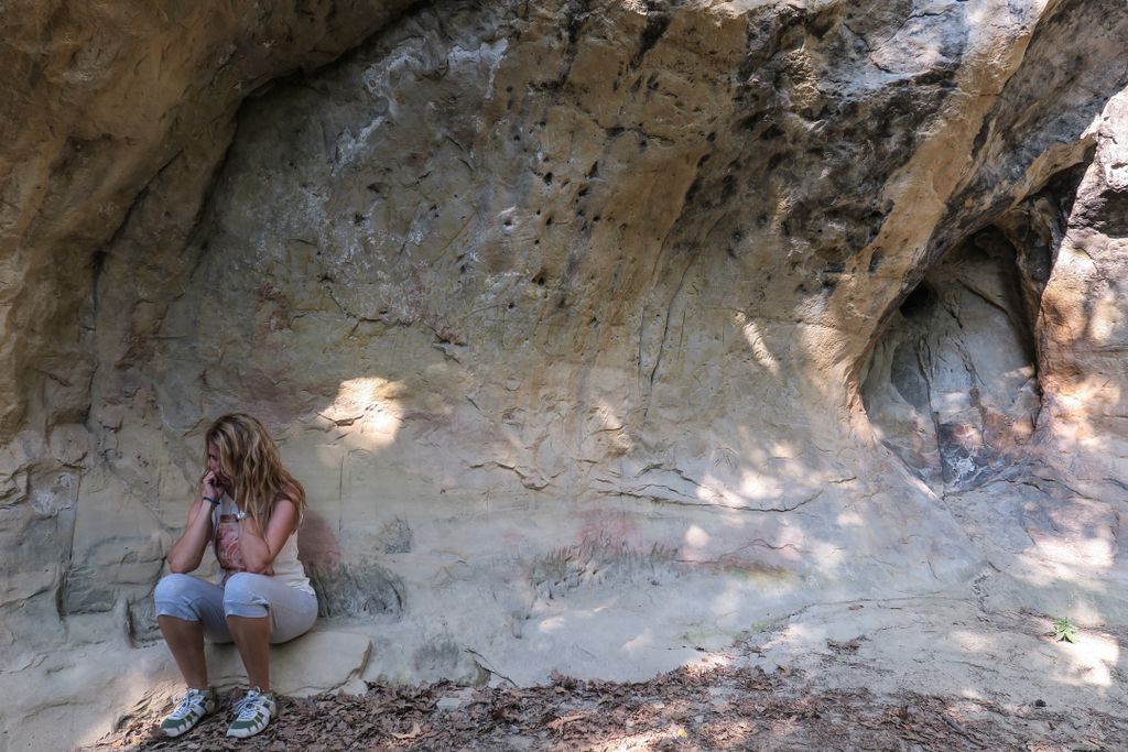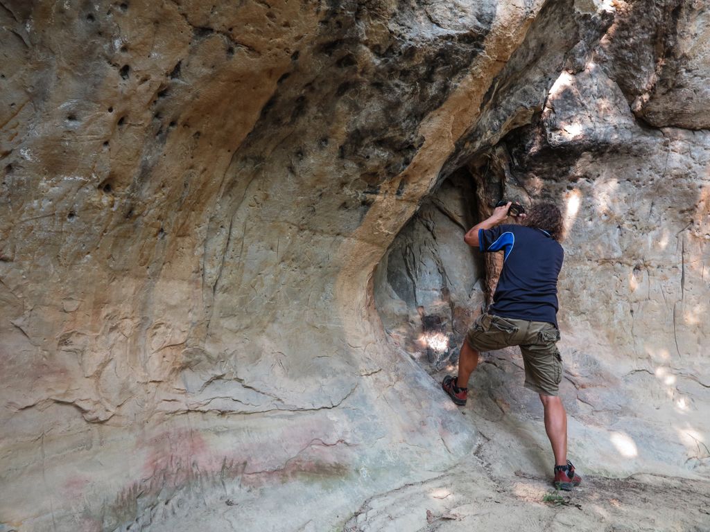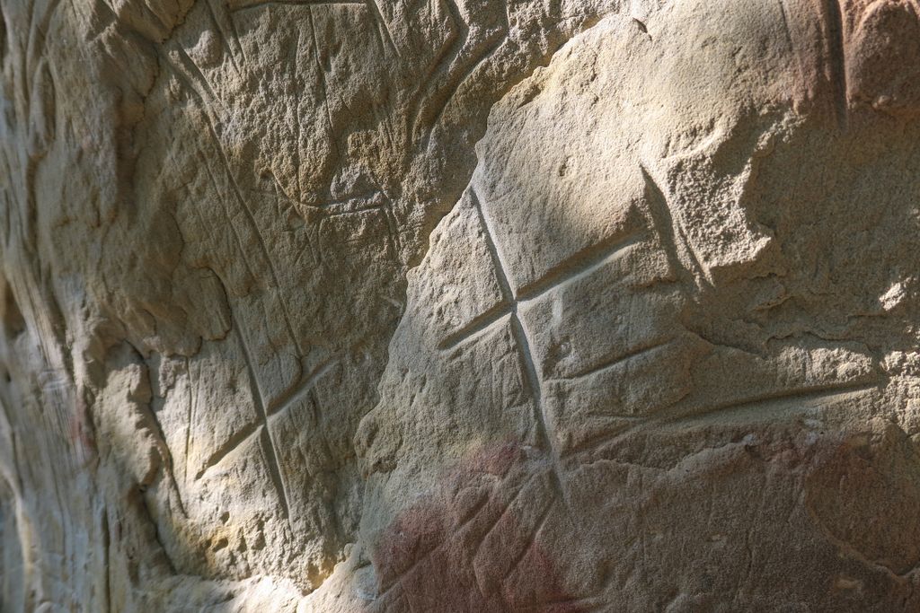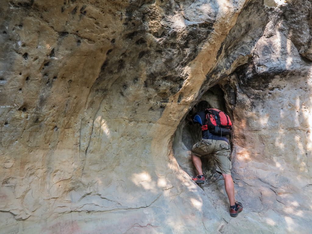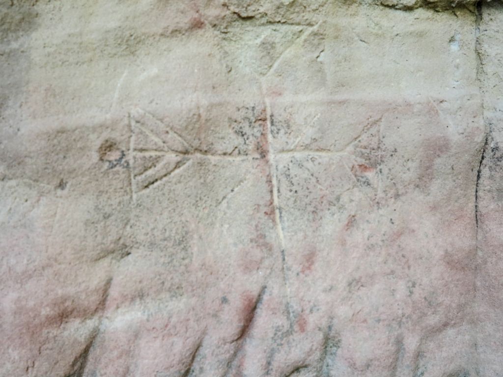 Când dai prima oară cu ochii de grota asta micuță, cât aproape un stat om, creată în gresiile uriașe – pe care semnul crucii e prezent în multe forme și în multe locuri -, îți sare în ochi forma ei, ca un ou uriaș, și îți spui ”fii atent, ce formă ciudată a creat natura!”. Apoi observi, în mijlocul găurii ăsteia sub formă de ou, o altă gaură, mai mică, de vreo 20 de centimetri diametru, aproape perfect rotundă, în interiorul căreia, la vreo 20 centimetri adâncime, o altă gaură, și ea aproape perfect rotundă, cu un diametru de vreo 5 centimetri.