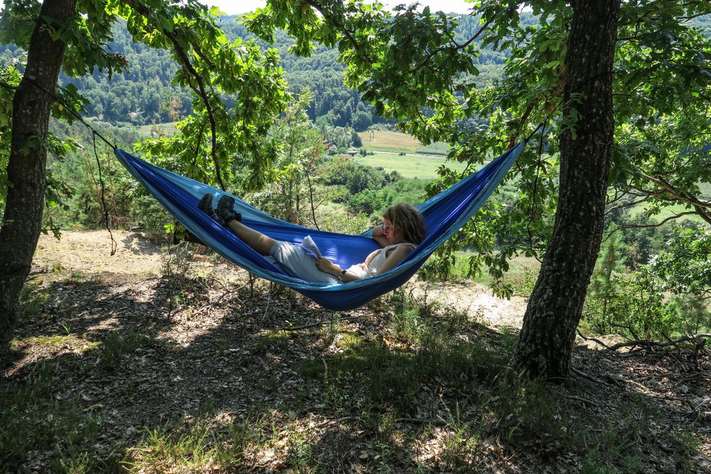 Ne-am propus tabăra asta de ceva vreme, ca să putem să cercetăm mai bine locul și, într-un final, am ajuns acolo. Am lăsat SPS-ul mobil, respectiv mașina, la marginea drumului, apoi am luat rucsacurile și restul bagajelor și, după ce am ajuns la baza pantei abrupte, ne-am dat seama că deși nu foarte lungă, panta asta o să cam scoată untul din noi. Nu de alta, dar când ești ca un pom de iarnă, dar în loc de podoabe ai bagaje, te uiți cam nu cu foarte mare tragere de inimă la cărarea abruptă. Acuma, de ce ca un pom de iarnă? Pentru că, dat fiind că taberele ăstea le facem nu foarte departe de locul unde parcăm mașina, nici bagajele nu sînt așezate la fel ca atunci când mergi pe munte, iar fiecare gram contează. Așa că, pe lângă rucsacuri, avem o grămadă de lucruri de cărat, printre care și o paporniță (o plasă de rafie mare, dar mare de tot), pe care, acum, pe panta abruptă, când se agăța de toate crengile, rădăcinile ori colțurile de piatră posibile, am blagoslovit-o în toate felurile. Iar asta pentru că mi-am dat seama că asta e a cincea oară când o cărăm după noi, când am fi putut, foarte bine, să punem toate lucrurile ălea în altceva, o geantă, de exemplu, care ar fi mult mai ușor de cărat. Așa, cu papornița, aproape că am arat toată cărarea până sus, desupra stâncilor, aducându-mi aminte de nea Pavel, un om hâtru pe care l-am întâlnit într-una din aventurile prin Sălaj, l-am imitat, fără voie: ”Futu-i soarele ei de paporniță! Adică ce, io-s prost de o las să-mi lungească mâinile, când puteam foarte bine să folosesc o geantă ceva mai mică? Cum de nu mi-am dat seama până acum că o car ca prostu’?”. Și, bineînțeles, faza, pe lângă nervii de rigoare, a fost și comică, și mi-am dat seama de asta surprinzându-mă, printre blagosloveli, râzând de mine, așa, înfundat. Gina, cealaltă parte a SPS-ului, însă, râdea de-a binelea, și a râs, chiar dacă panta s-a dovedit, așa, încărcați, foarte dificil de parcurs, până am ajuns sus.