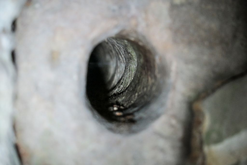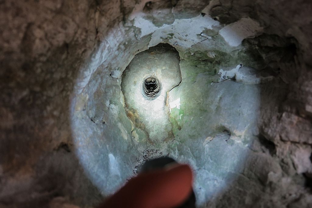 Imaginația ar putea fi arătată cu degetul de cei mai mulți dintre sceptici, cum că ar sta la baza acestor afirmații. Și tocmai de aceea am cercetat și mai atent gaura cea mică, care și-a păstrat forma perfect rotundă. La lumina lanternei de mici dimensiuni, astfel încât fasciculul de lumină să lumineze interiorul găurii, se pot vedea un fel de striații, ca un fel de filet, striații groase de aproape un centimetru, și care, la rândul lor, sînt ”ornamentate” cu un fel de striații, dar mult mai mici și care au (ori așa par văzute din poziția incomodă în care eram) o orientare inversă decât cele principale. La capătul ”filetului”, la o adâncime de vreo 30 – 40 de centimetri, peretele e drept, neted, cu nunațe de negru și auriu, în care se poate vedea o formă ca a unei stele în cinci colțuri, și care are darul, și mai mult, să te facă să te întrebi ”oare asta de ce a fost făcută și de către cine?”.
