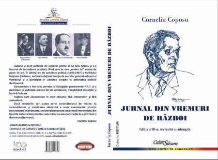 Pentru că exemplarele edițiilor anterioare – apărute tot la Editura „Caiete Silvane” (ed. I-a, 2013, ed. a II-a, 2014) – s-au epuizat, s-a publicat această a III-a ediție, revăzută și completată cu o consistentă secțiune – „Addenda”, care cuprinde articole, din presa culturală și nu numai, despre acest jurnal inedit al Seniorului, descoperit și adus la lumină de dr. Marin Pop, care precizează în „Studiu introductiv”: „În arhivele Consiliului Naţional pentru Studierea Arhivelor Securităţii (CNSAS) din Bucureşti, în cadrul zecilor de mii de file care fac referire la Corneliu Coposu am descoperit şi un jurnal inedit scris de către acesta. Despre jurnal aminteşte şi Călin Tudor Zarojanu, primul jurnalist care a avut acces (oficial) la dosarele CNSAS referitoare la Corneliu Coposu. În cartea sa, «Viaţa lui Corneliu Coposu cu documente din arhiva fostei Securităţi», ediţia I şi a II-a, apărută la Editura «Maşina de scris» din Bucureşti, publică câteva pagini din respectivul jurnal. Sunt fragmente legate de moartea lui Virgil Madgearu şi ziua de 23 august 1944. Noi am considerat că jurnalul merită publicat în întregime, datorită importanţei sale istorice de excepţie. El face lumină asupra multor evenimente petrecute în perioada tulbure a celui de al Doilea Război Mondial”. Iar autorul jurnalului, Seniorul – sălăjean originar din Bobota, reper de înaltă moralitate pentru toți românii – notează, printre altele, în „Cuvânt înainte”: „Dacă relatările vor putea servi cercetătorului de mâine, la reconstituirea şi elucidarea obiectivă a unor evenimente istorice necunoscute în amănunte, unilateral cunoscute sau eronat interpretate, din lipsă de material documentar, autorul lor va avea satisfacţia de a-şi fi făcut o datorie cetăţenească”. Din „Addenda”, consemnăm numele semnatarilor textelor despre „Jurnal din vremuri de războiu”: Al. Cistelecan, Răzvan Voncu, Adrian Man, Olimpia Man, Alina Pop, Mirel Matyas și Marian Horvat.