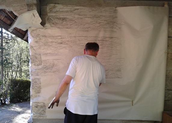 Proiectul Povestea mutării a fost prezentat într-o prima etapă în noiembrie 2012, artistul a expus atunci pictura Ciucea-Gălpâia pe faţada Fabricii de Pensule din Cluj timp de cinci luni de zile, testându-i astfel rezistenţa şi, în acelaşi timp, fragilitatea în relaţie cu spaţiul expunerii – foarte diferit de contextul protector al atelierului – şi cu schimbările termice. Lucrarea reproducea în mărime naturală rămăşiţele picturii originale din interiorul bisericii de lemn de la Ciucea, realizate de Ioan Pop din Românaşi, acum două sute de ani, şi descria astfel felul în care timpul şi-a lăsat urmele asupra ei.