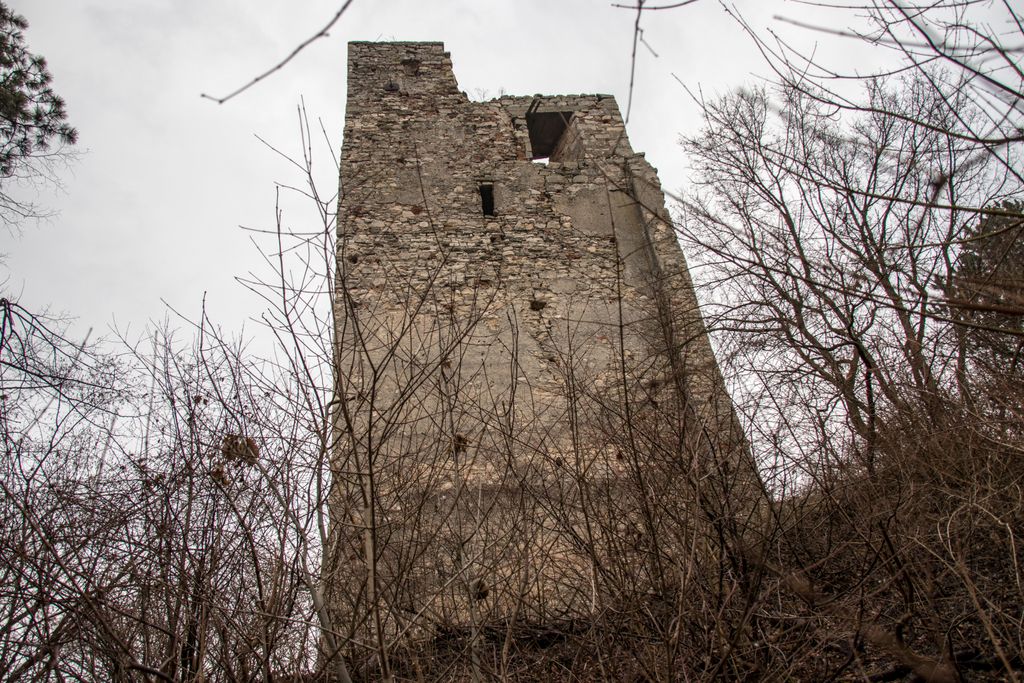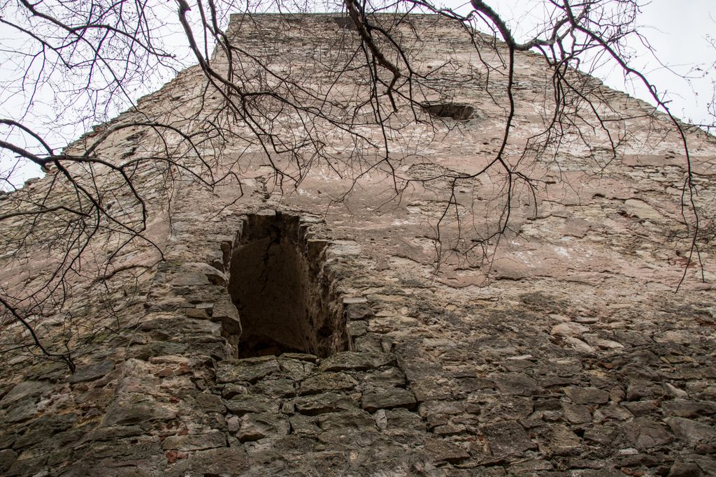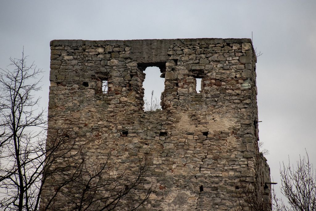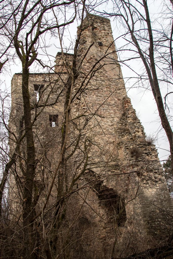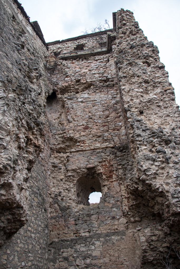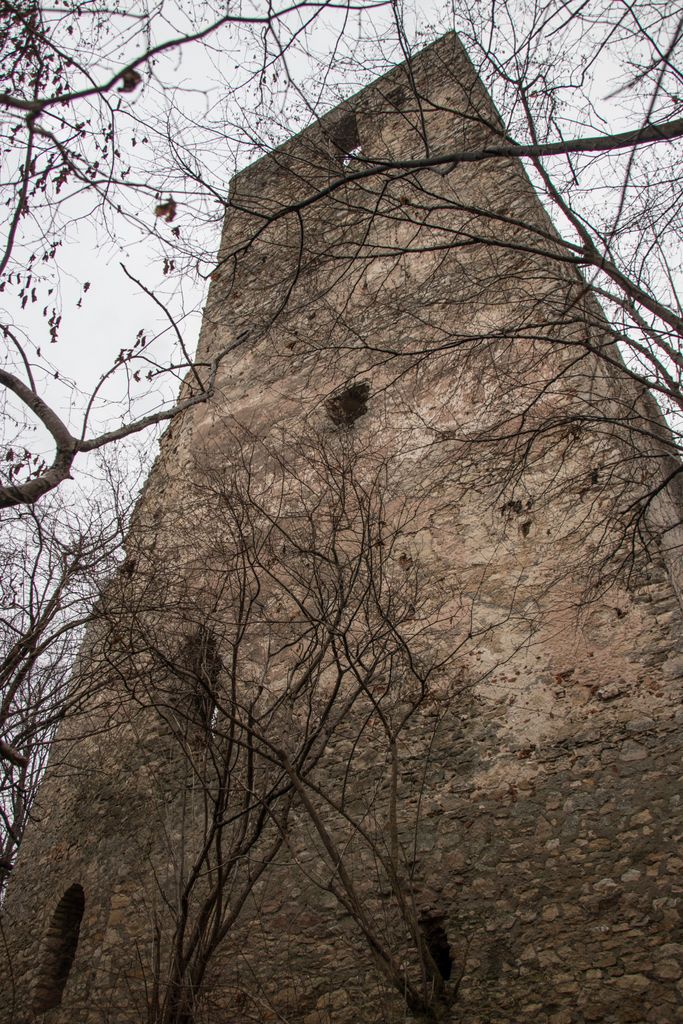 Cele patru etaje ale turnului se pot distinge destul de ușor, locul unde au fost bârnele sînt evidente, iar ferestrele așezate din loc în loc îți stârnesc curiozitatea. Poate de asta, ori poate doar dintr-un impuls de teribilist de doi bani, fereastra de la primul etaj e ”împodobită” cu niscaiva inscripții ale celor care s-au încumetat să urce până acolo. E drept, acum zece ani am urcat și eu acolo, să văd cum se vede de sus, dar atât, am lăsat locul așa cum l-am găsit. Unii, însă, nu se mulțumesc cu atât și simt nevoia să lase urme, de fapt nu urme, ci mizerie, pentru că inscripțiile ăstea asta sînt – mizerie. Însă, e de mirare? Lipsa de respect pentru orice și pentru oricine e, acum, în zilele ăstea, o virtute.
