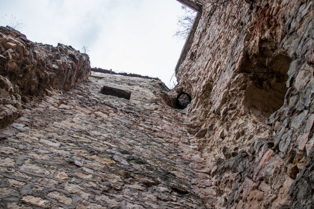 e impresionant, iar atunci când ești lângă el, privind în sus, încercând să-l cuprinzi cu privirea, măreția construcției de odinioară e evidentă, mai ales că zidurile groase de doi metri par niște stânci, și nu poți doar să privești zidurile ăstea înalte fără să caști ochii mari: ”oare cum au reușit oamenii, atunci, să construiască așa ceva?”. Și e ușor să-ți lași imaginația să întregească tabloul acela al istoriei și să te pui în locul celui care stătea de veghe la etajul patru al turnului, privind la lumea aflată jos, foarte jos, sub el. Chiar, oare cum urcau oamenii, atunci, etajele ăstea, care era calea de acces, erau ceva scări, cum ajungeau ei sus, pe metereze? Iar tunelul acela pe unde, probabil, își trăgeau cu sforile proviziile, e cu atât mai mult mai intrigant.