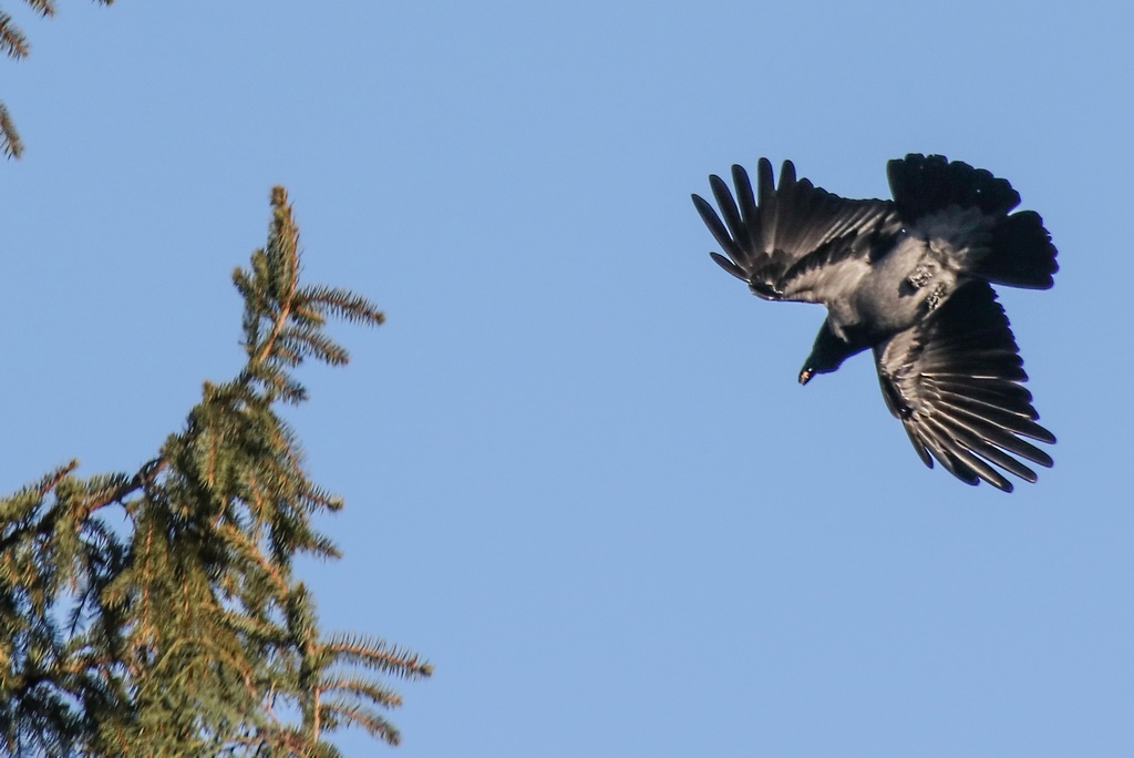 Uite-o cioară, solitară, c-o bobiță-n cioc, cum zboară