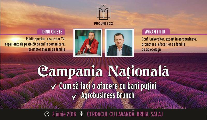 Cerdacul cu Lavandă din Brebi va găzdui sâmbătă, 2 iunie, atelierul de afaceri inovative "Agrobusiness Brunch ", eveniment organizat sub egida Pro UNESCO . Cu această ocazie Dinu Criste și Avram Fițiu, realizatorii serialului de televiziune...