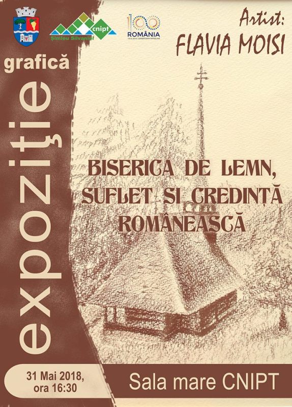 Vernisajul expoziției de grafică ,,Biserica de lemn, suflet și credință românească” a artistei Flavia Moisi va avea loc joi, 31 mai 2018, de la ora 16.30, în Sala Mare a Centrului Național de Informare și Promovare Turistică din Șimleu...