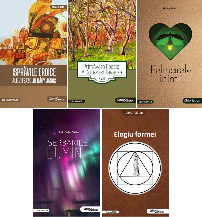 Volume apărute la Editura „Caiete Silvane” a Centrului de Cultură și Artă al Județului Sălaj cu ocazia celei de-a XVIII-a ediţii a Festivalului „Primăvara Poeziei – A Költészet Tavasza”, Zalău, 26-28 aprilie 2018, cele cinci căr...