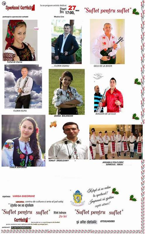 Centrul de Cultură şi Artă al Judeţului Sălaj va găzdui vineri, 27 mai, de la ora 17:00, spectacolul caritabil „Suflet pentru suflet“, care va aduce în faţa publicului mai mulţi artişti de muzică populară. Preţul unui bilet este de 2...