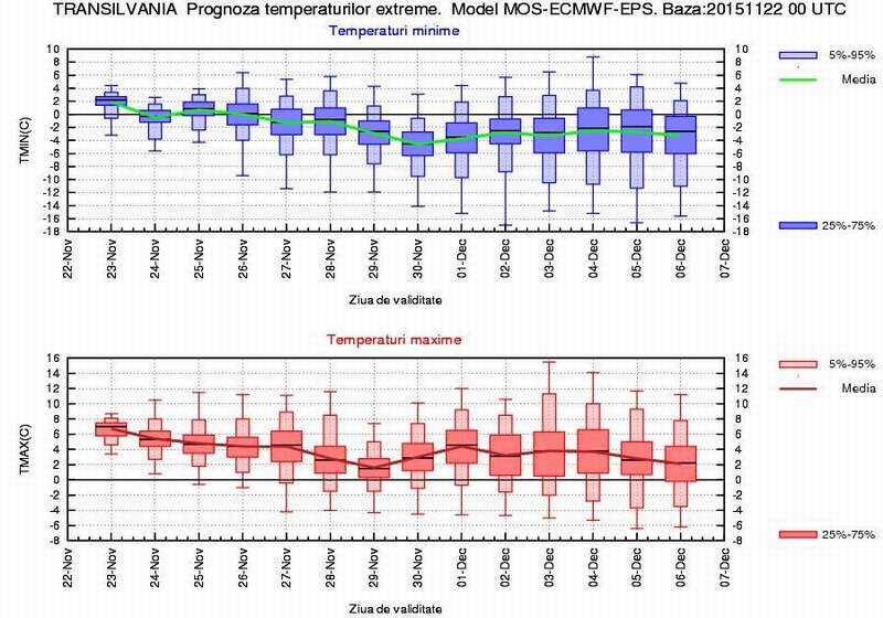 Conform ultimei prognoze a Administrației Naționale de Meteorologie (ANM), în Transilvania, pe durata celor două săptămâni de estimări, care se încadrează în intervalul 23 noiembrie - 6 decembrie, sunt preconizate temperaturi ce se vor sit...