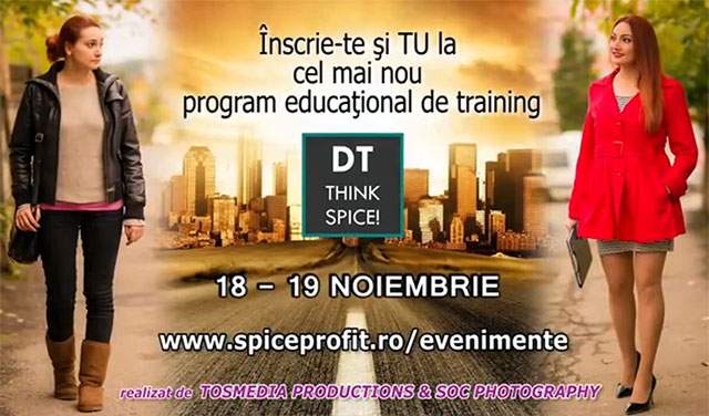 DOING TRAINING. THINK SPICE!, cel mai nou program educațional de training, va avea loc în perioada 18 – 19 noiembrie, la Filiala Satu Mare a Universității de Vest “Vasile Goldiș” din Arad, între orele 13.00 – 20.00, unde sînt aștepta...