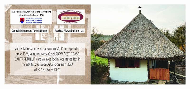 Asociația Alexandra Etno - Iaz, Centrul de Informare Turistică Plopiș și Centrul de Cultură și Artă al Județului Sălaj îi invită pe toți cei interesați la inaugurarea casei slovăcești „Casa cântărețului”, la Iaz, în incinta Muz...