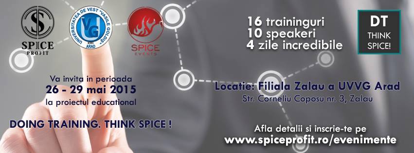 Evenimentul "Doing Training. Think Spice!" oferă sălăjenilor şansa de a se dezvolta pe plan personal şi profesional, în perioada 26-29 mai, în cadrul a 16 traininguri atractive şi constructive susţinute de 10 specialişti, în organizarea Sp...