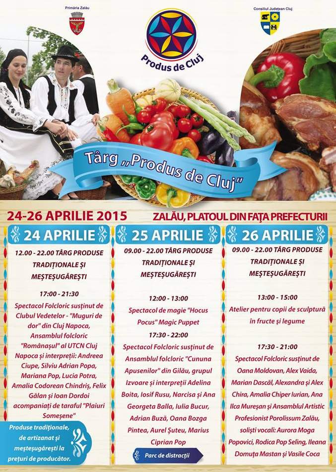 Mai mulţi producători îşi vor expune marfa cu specific tradiţional şi de artizanat, în cadrul târgului „Produs de Cluj”, pe platoul de marmură din fața Prefecturii, în perioada 24- 26 aprilie, în organizarea Asociaţiei „Produs de C...