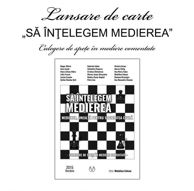 Culegerea de speţe în mediere comentate „Să înțelegem medierea” va fi lansată marţi, 3 martie 2015, la Biblioteca Judeţeană Sălaj, în sala de lectură, de la ora 16:30. La eveniment vor participa co-autorii: Mugur Mitroi, Anca Iacob, ...