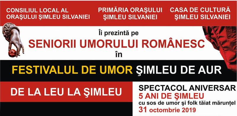 Spectacolul aniversar ”5 ani de Șimleu” va avea loc joi, 31 octombrie 2019, ora 18.00, la Casa de Cultură Șimleu Silvaniei, un eveniment organizat de Consiliul local al orașului, Primăria și Casa de Cultură Șimleu Silvaniei. Spectaco...