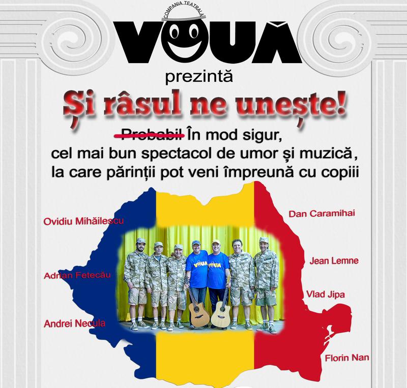 ”Și râsul ne unește”, cel mai bun spectacol de umor și muzică, la care părinții pot veni împreună cu copiii, așa cum spun cei de la Grupul Vouă, va avea loc joi, 31 octombrie 2019, ora 17.00, Sala „Dialoguri europene” de la Centru...