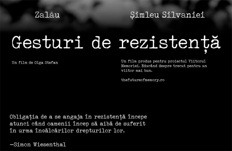 Proiecția filmului documentar „Gesturi de Rezistență” va avea loc marți, 1 octombrie 2019, de la ora 19:00, la Galeria de Artă „Ioan Sima” a Muzeului Județean de Istorie și Artă Zalău, și miercuri, 2 octombrie, de la ora 18:0...