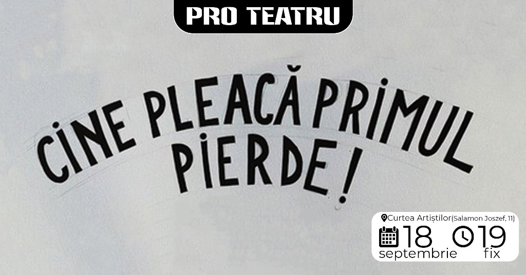 Reprezentanții Pro Teatru propun pentru miercuri, 18 septembrie, de la ora 19:00, în Curtea Artișilor, piesa „Cine pleacă primul pierde” cu artiștii Dumitru Stegărescu și Cristina Ragos. În adolescență un el și o ea pot fi...