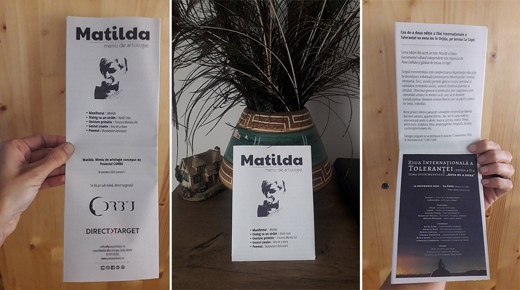 Matilda este un meniu de artologie bazat pe un anumit tip de hrană: impresiile. Un meniu obișnuit ne satisfice simțurile prin mâncăruri, băuturi, delicatese care ne incită simțurile fizice. Un meniu mai puțin obișnuit ar fi unul care c...
