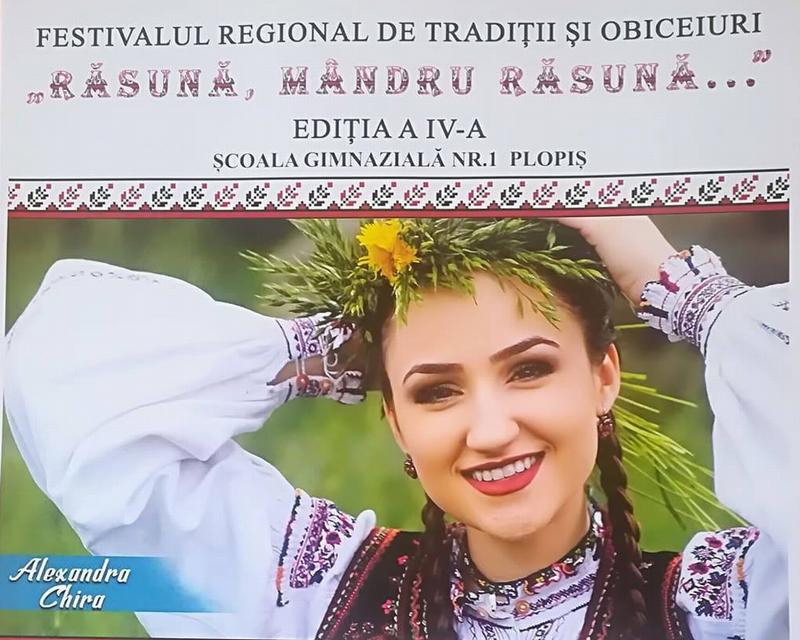 A patra ediție a Festivalului regional de tradiții și obiceiuri ”Răsună, mândru răsună...” va avea loc duminică, 12 mai 2019, ora 12.00, la Centrul Cultural Plopiș, și îi va avea ca invitați speciali pe Alex și Alexandra Chira....