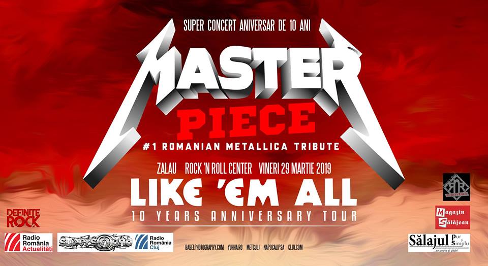 Un corcert Masterpiece tribut Metallica va avea loc vineri, 29 martie, de la ora 20:00, în Rock'n Roll Centerdin Zalău. „Vino să vezi cea mai tare trupă de tribut Metallica din estul Europei! Calitatea muzicii, showul, energia și dinam...