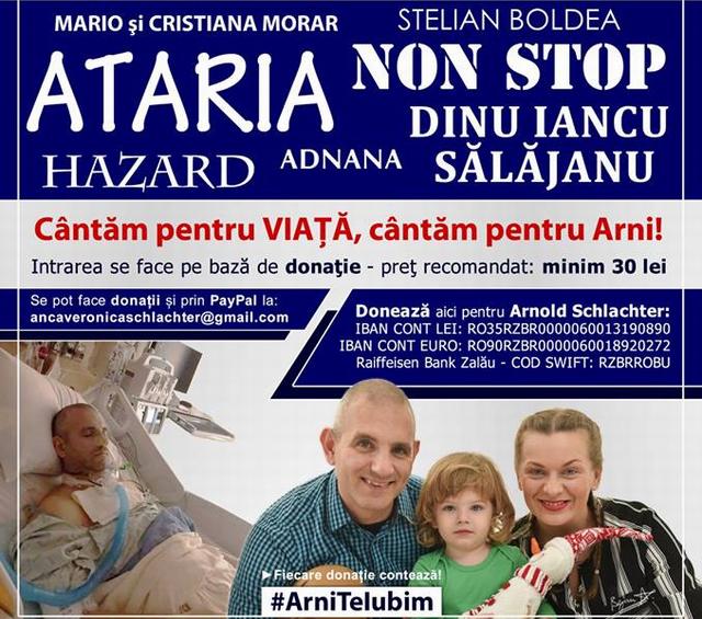 Pentru a veni în sprijinul ziaristului Arnold Schlachter, duminică, 24 februarie 2019, ora 17.00, la Casa de Cultură a Sindicatelor din Zalău, va avea loc un spectacol caritabil. Vor urca pe scenă: Sava Neagrean Brudașcu, Radu Ciordaș...