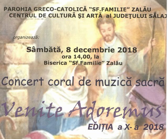 Ansambluri corale din Zalău, Șimleu Silvaniei, Bistrița-Năsăud și Sighetu-Marmației vor fi prezente la a zecea ediție a Concertului coral de muzică sacră ”Venite Adoremus”, care va avea loc sâmbătă, 8 decembrie 2018, ora 14.00, la Bi...