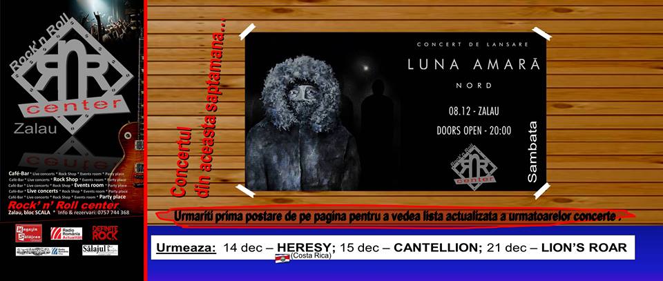 ”Pentru că iarna din noi a sosit”, Luna Amară lansează cel de-al șaselea album de studio, "Nord", sâmbătă, 08.12.2018, cu începere de la ora 20:00, în Rock'N Roll Center Zalău. Discul va fi promovat în cadrul unui turneu ce va cuprinde...