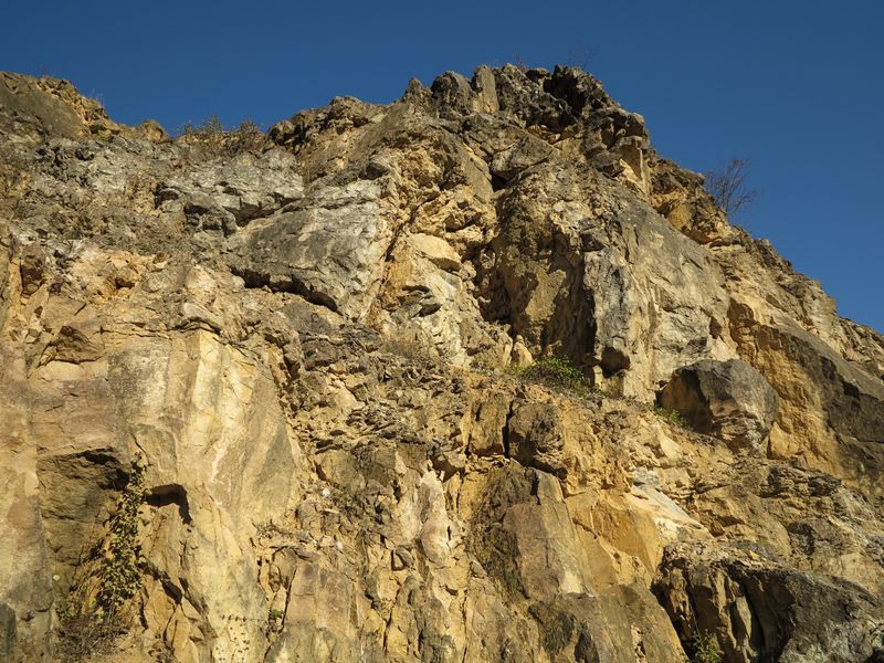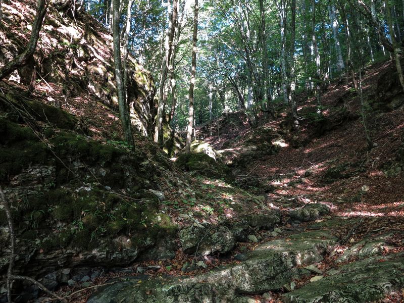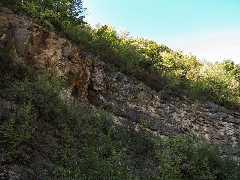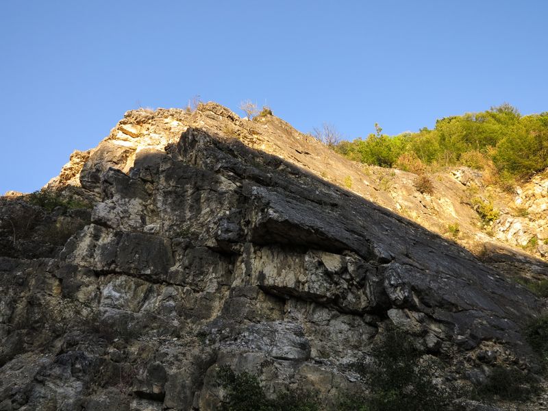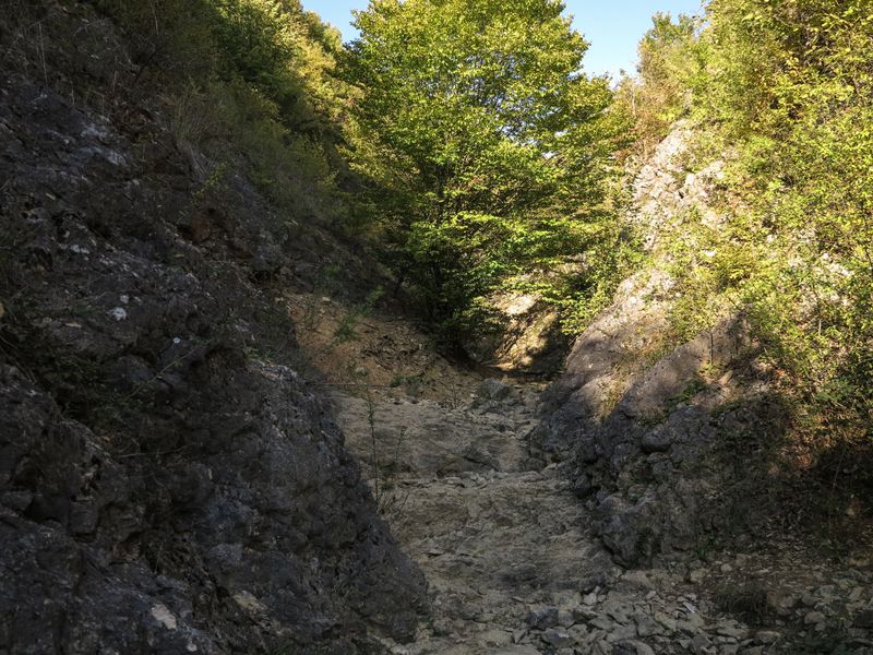 Așa, privind de jos, nu pare greu să te cațeri pe stâncile ălea gri-gălbui. Îți iei, la ochi, câteva repere, apoi îți zici că e ok, n-o să fie mare lucru: pun o mână acolo, în dreapta se mai vede un loc de acces către primul etaj, iar de acolo pare că aproape ai ajuns în vârf. Așa cum mi-am zis și eu. Întâi, însă, am să merg pe partea dreaptă a cheilor, să am o privire de ansamblu a stâncilor celor mari, plus că pădurea de deasupra cine știe ce frumuseți poate să ascundă. Apoi, am să ajung și acolo, la stâncile pe care, mă gândeam, o să fie ușor să mă cațăr, deși știu din experiență că niciodată nu e la fel precum pare.