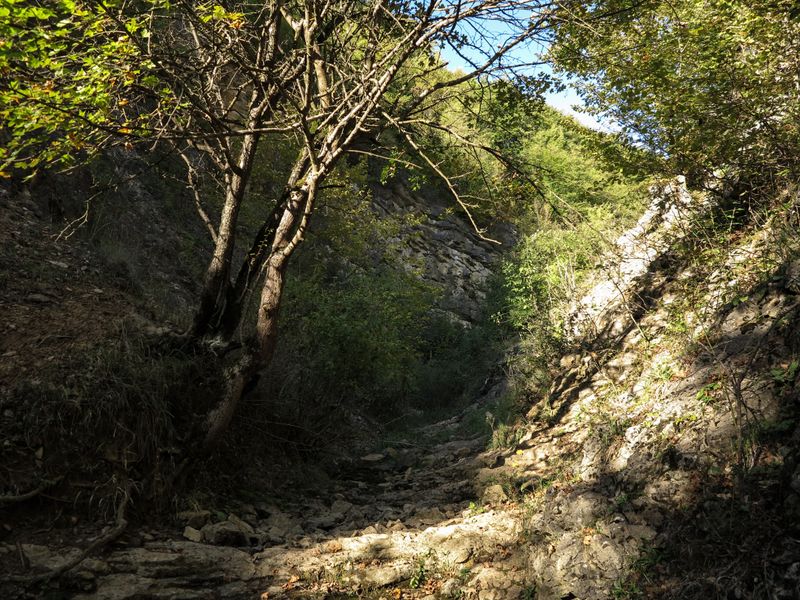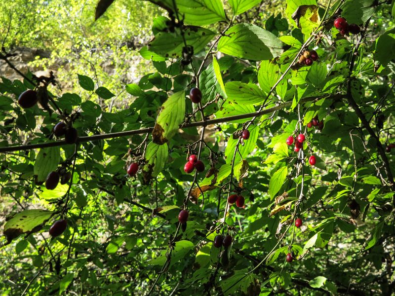 Întotdeauna am ascultat ce-mi spune natura. Deci, prin canion. Acolo unde, după câteva minute de mers, un covor roșu m-a făcut să mă opresc. “Hiii, ce de coarne…” Iar fructele mici, roșii, coapte, au fost o delicatesă, chiar dacă, din când în când, în timp ce savuram dulceața aceea ușor acrișoară, îmi trecea prin minte că fructele ăstea, coarnele, sînt folosite ca tratament naturist împotriva diareei. Adică te constipă. Am zâmbit doar. De mâncat nu se punea problema să mă opresc, am mai înfulecat un pumn de coarne. Am urmat valea micului canion, călcând cu atenție pe lespezile de piatră, umede și foarte alunecoase. Nu de alta, dar mai vreau să mă și cațăr.