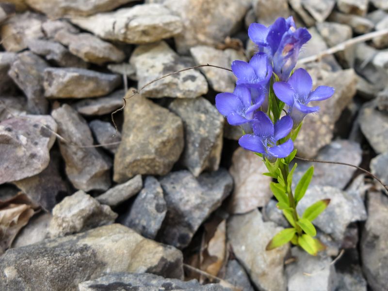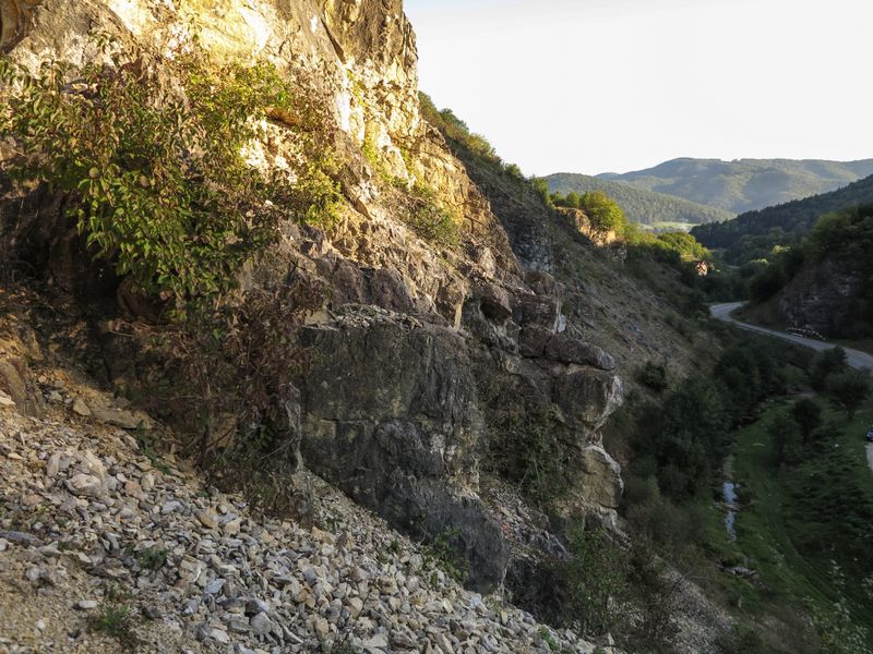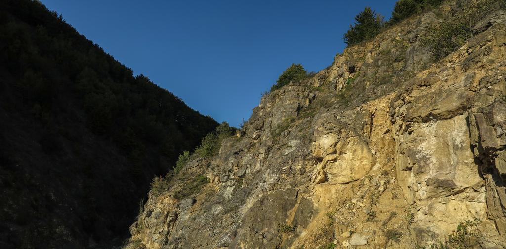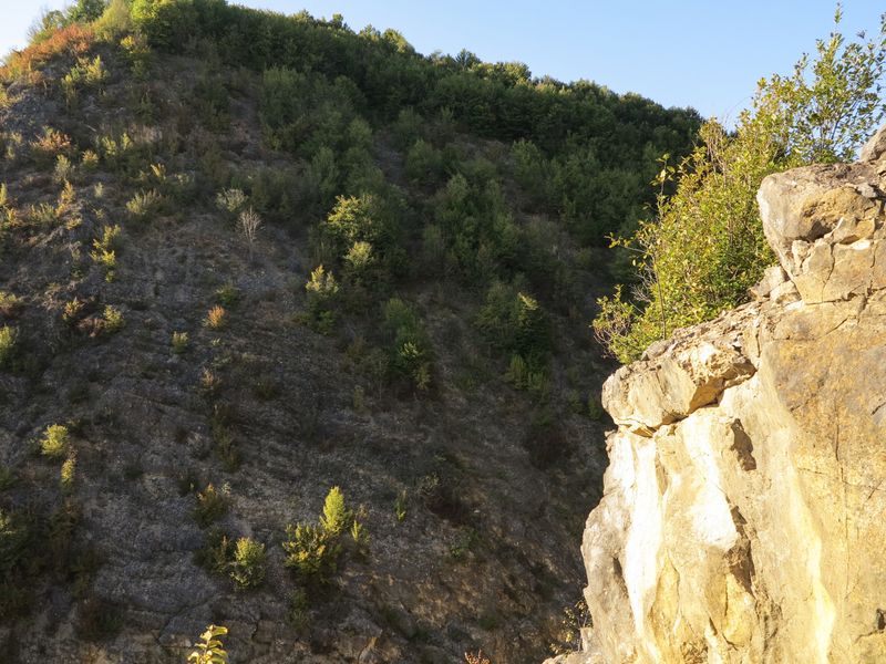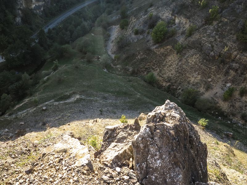 După un urcuș abrupt, dar scurt, am ajuns la poalele stâncilor deasupra cărora pădurea pare că se apleacă peste tine, mai ales că, în multe locuri, peretele galben stâncos face un fel de bolte, destul de pronunțate, și parcă nu-ți vine să stai foarte mult acolo, bolovanii mari ai stâncii părând că nu stau prea bine acolo și că, oricând, pot să se prăvale peste tine și peste florile ălea albastre, un fel de gențiane, de lângă tine. Dar uiți repede de asta, odată ce te întorci cu fața către cealaltă parte ca cheilor, cea cu stâncile ălea mari, pe care tocmai ți-ai făcut planuri cum că o să te cațeri. Dacă te lasă. Și, crede-mă, din locul acela, priveliștea e deosebită, stând, așa, față în față cu stâncile. Dintr-o dată, te simți ca și cum, la fel cum tu privești stâncile, și ele, la rându-le, te privesc. “Salut, eu sînt un om”, îți auzi gândurile.