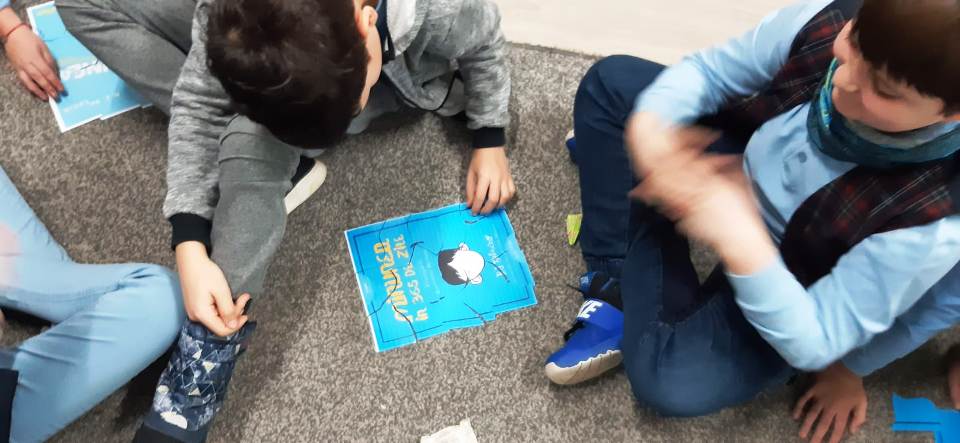 În următoarea etapă a lecției, elevii au avut rolul de povestitor, ocupând scaunul povestitorului și prezentând o continuare a poveștii așa cum o văd ei, la final, elevii celor două clase realizând un puzzle care a conturat imaginea cărții prezentate.
