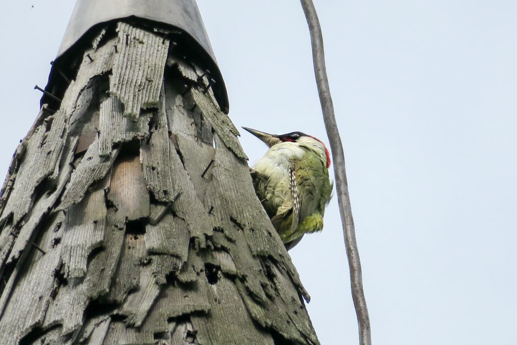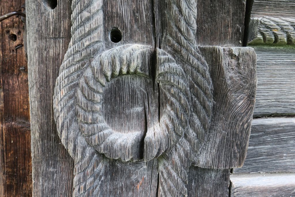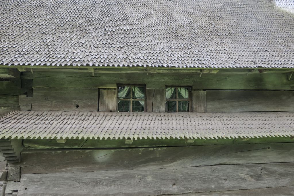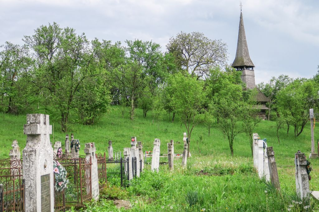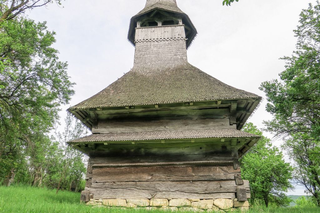 Acuma, nu știu dacă ghionoaia și-o fi dat seama că mi-era drag de ea, cum stătea cocoțată în vârful turnului clopotniței, glăsuind pe limba ei cât putea de tare, cert e că nu părea prea deranjată și stătea, așa, cu ochii ațintiți la lemnul pe care-l găurise cu ciocul ei mare, aproape nemișcată. Apoi, până să apuc să apăs de două ori pe declanșatorul aparatului de fotografiat, și-a luat zborul, spunându-mi ceva în graiul ei cu mulți decibeli. Eu am luat vorbăraia de bine, un fel de încuviințare de a mă apropia de biserica de lemn de pe moșia ei, să o văd mai de aproape. Din afară. Că oricât ne-am uitat după careva de-al locului, care să ne ajute să intrăm înăuntru, nici țipenie de om. Doar înainte să ne pregătim de plecare, un bărbat a trecut pe uliță, împreună cu un câine, dar părea așa de în lumea lui, cărându-și sapa pe umăr, că n-am mai vrut să îl deranjăm cu ale noastre. L-am lăsat să-și vadă de drum și am dat ocol bisericii de mai multe ori, privind și atingând lemnul vechi cu care a fost construită.