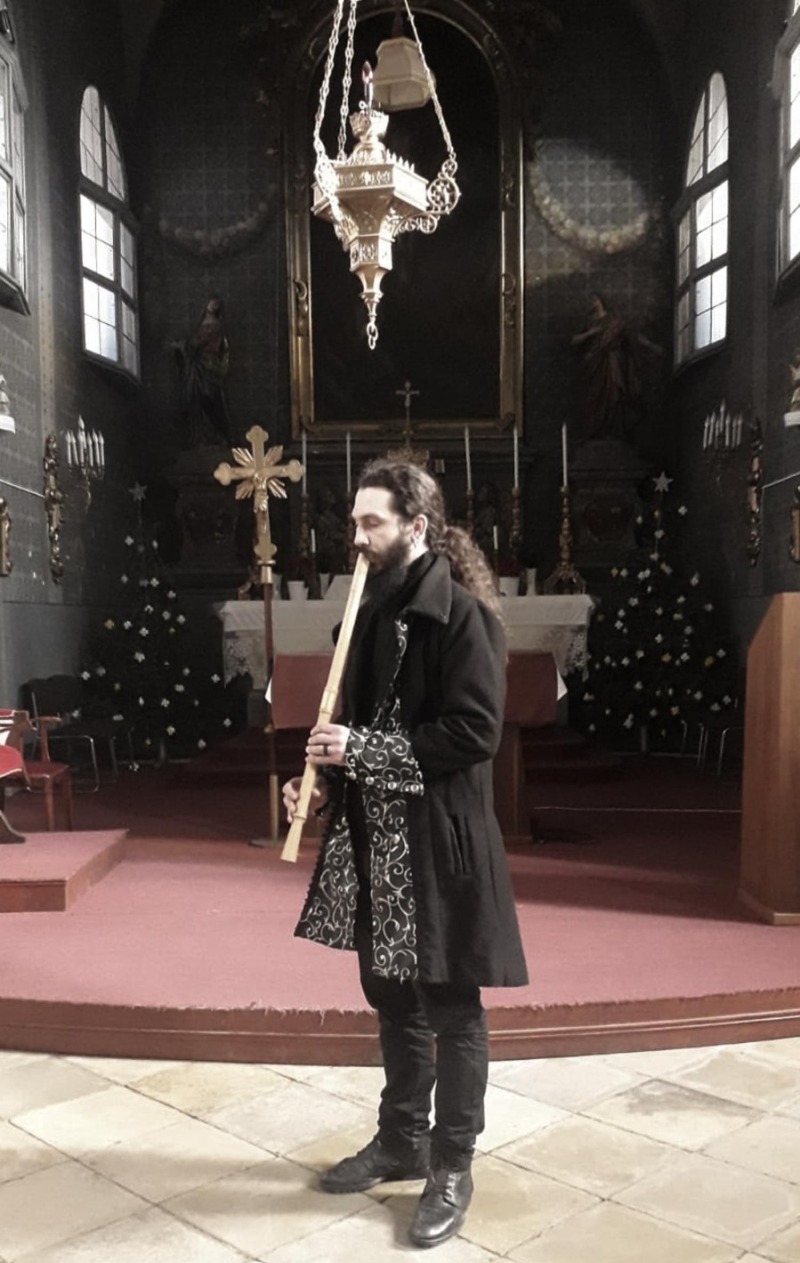 La recomandarea lui Ovidiu Roșu, în dimineața zilei de 23 ianuarie, am pornit înspre catedrala de la Vinga, o bijuterie arhitecturală neo-gotică, aflată pe strada Piața Sfânta Treime, nr. 9. Porțile închise. Am sunat la numărul de telefon de pe ușă și am fost întâmpinați de omul cu cheile. Aveam de așteptat 20 de minute până la deschidere așa că am dat o plimbare prin apropiere. În parcul de lângă catedrală am găsit un corb mort. Ne-am gândit că acest semn nu poate fi decât o renaștere spirituală. Ne-am întors la catedrală și Sergiu Corbu Boldor a ținut cel de-al doilea concert de caval pentru singurul om prezent: omul cu cheia.