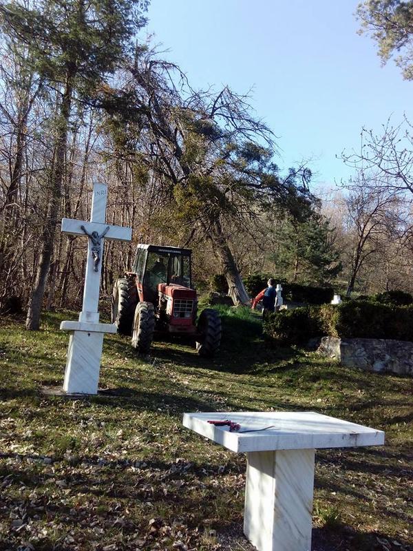 „Acest tei, fiind uscat, constituia un pericol pentru mormintele familiei Maniu. Anul trecut, în timpul unei furtuni s-au rupt crengi din acest copac și au căzut peste morminte, dar, din fericire, nu au deteriorat crucile mormintelor. Le mulțumim pentru ajutor șefului de Ocol „Măgura” din Șimleu Silvaniei, ing. Nicolae Valcăuan, și domnului Filipcic Ștefan care conduce o firmă de exploatare forestieră, și care, cu profesionalism, a reușit să scoată copacul fără ca mormintele să fie puse în pericol”, transmite parohul Cristian Borz.