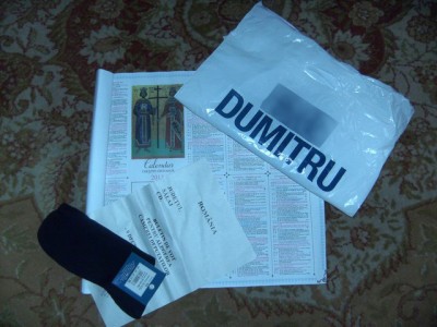 Iată cu ce-am dat nas în nas azi dimineaţă, cînd am ieşit în curte: o plasă mare albă, pe care era desenat cu albastru, un candidat R. Dumitru, de la PPDD. Dincolo de faptul că nu cunosc nici un fel de Dumitru (doar de ăla popular, cîntat pe chefurile de morţi beţi, cu ” o murit Dumitruuuuu, cu mâna pe pu….) şi nici măcar cu abrevierile astea nu sînt tocmai lămurit (le ştiu pe ălea gen WTF ori PLM), plasa aia mai mare conţinea o plasă mai mică, de data asta albă, fără inscripţii, în care se găseau un calendar ortodox, un buletin de vot şi o pereche de şosete.