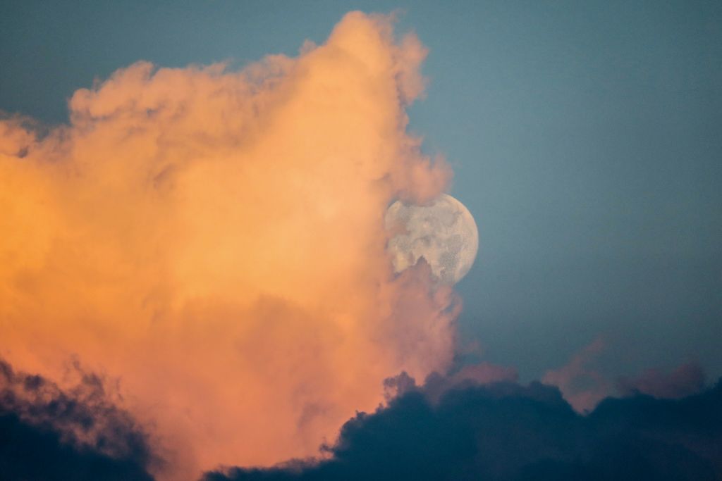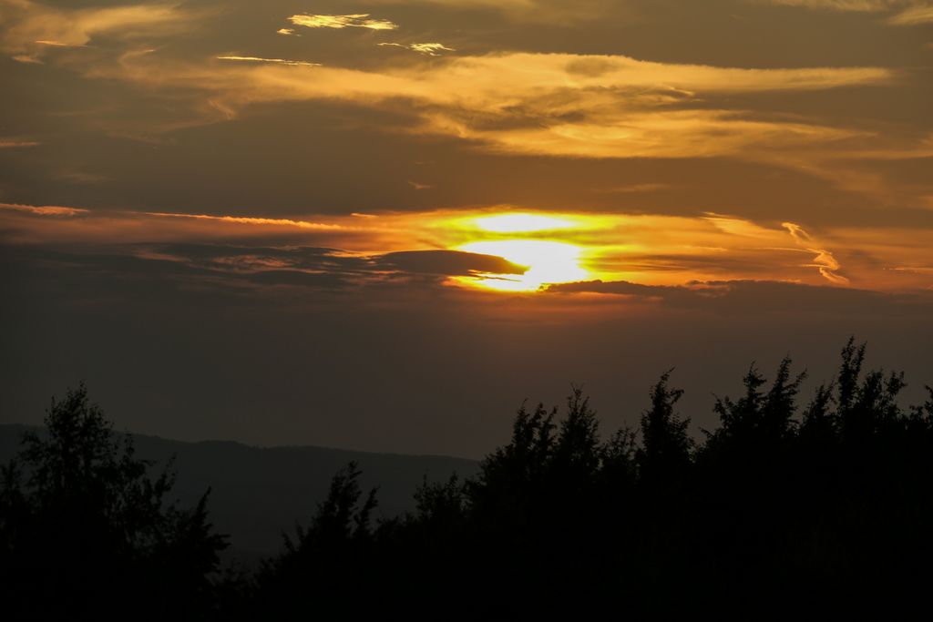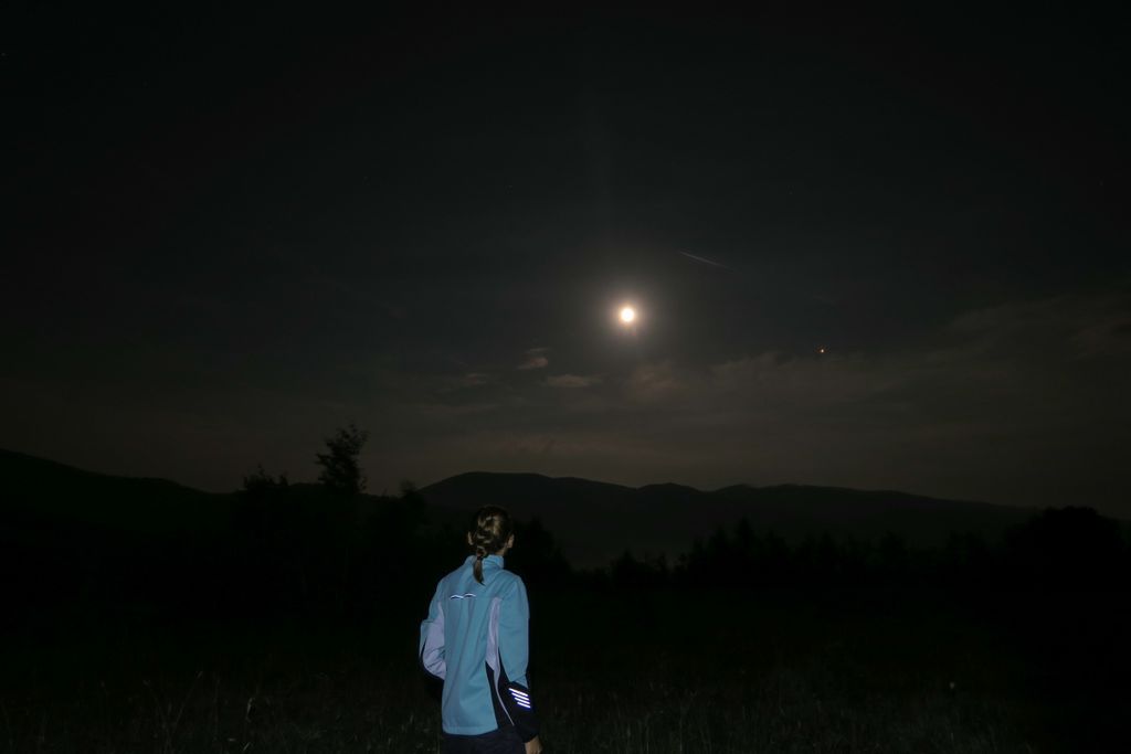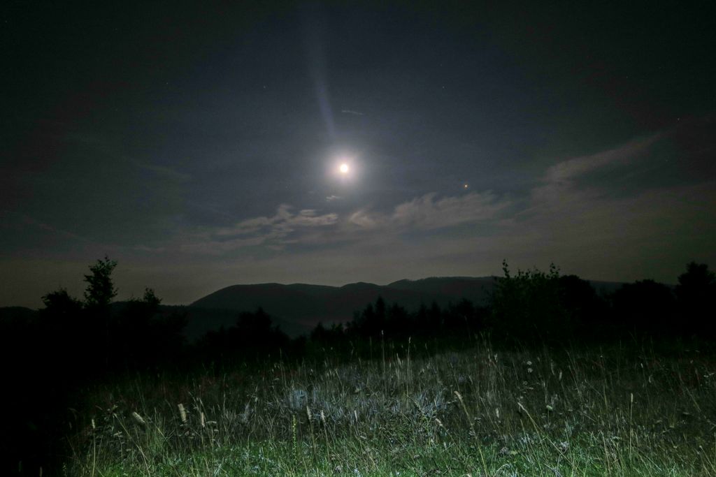 Pe măsură ce norii negri de furtună (și ce furtună a fost în jur!, cât pe ce să ne trimită acasă) s-au risipit odată cu apusul soarelui, Luna a apărut, la început timid, de după ce a mai rămas din norii negri, apoi luminând totul în jur cu lumina ei portocalie, devenind, atunci și acolo, centrul universului. Și privind tabloul acela – țuguiul montan de lângă noi arătând către cerul cu lună plină, ne-am bucurat că am ales să mutăm redacția publicației, din nou, sub cerul liber.