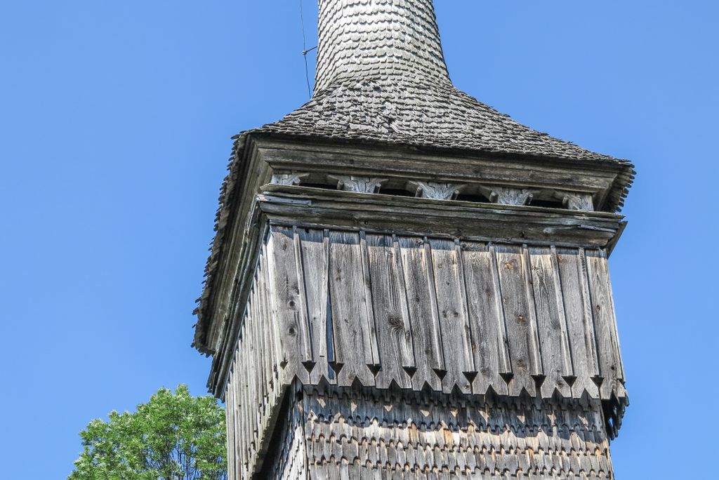 Biserica are o singură intrare pe latura de vest, unde a fost construit un pridvor închis. Și, spre deosebire de celelalte biserici pe care le-am vizitat, are o toacă din metal, nu din lemn, cum se obișnuiește. O toacă ruginită, cu o crăpătură de-a lungul ei.