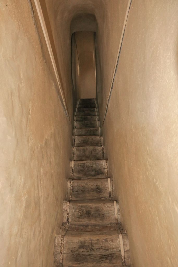 Am intrat pe poartă și ne-am îndreptat către edificiu. Ne-am oprit la ușa de la intrare, apoi ne-am amintit de ce ne-a spus femeia, cum că-i voie. Am învârtit cheia în ușă și am intrat. Iar primul lucru care ne-a atras atenția, cu totul, a fost culoarul îngust care se deschidea în stânga ușii și scările de lemn care păreau că urcă către o lume ascunsă, misterioasă. Și am pășit, în liniște, pe