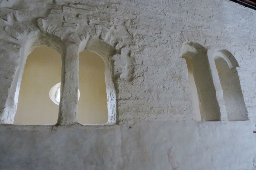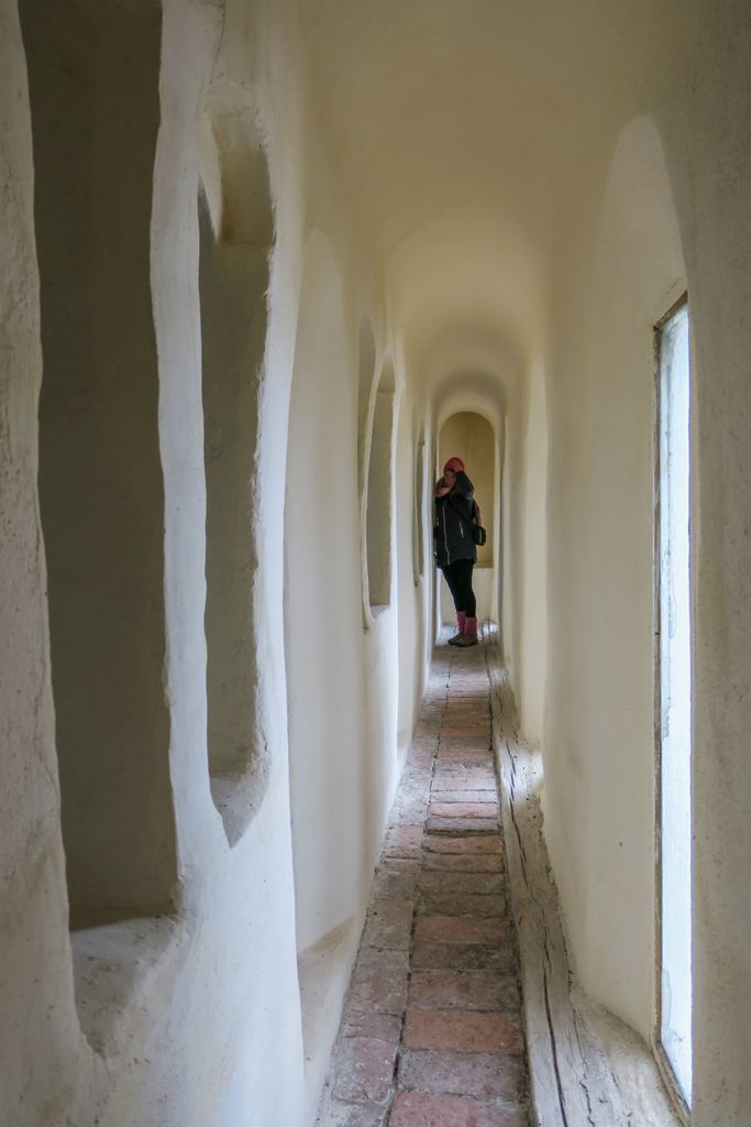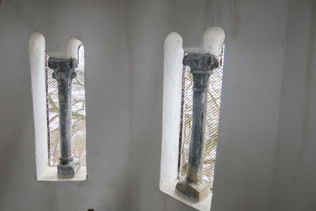 Ferestrele boltite ale coridorului permit luminii să pătrundă în corpul bisericii pe toată durata zilei.