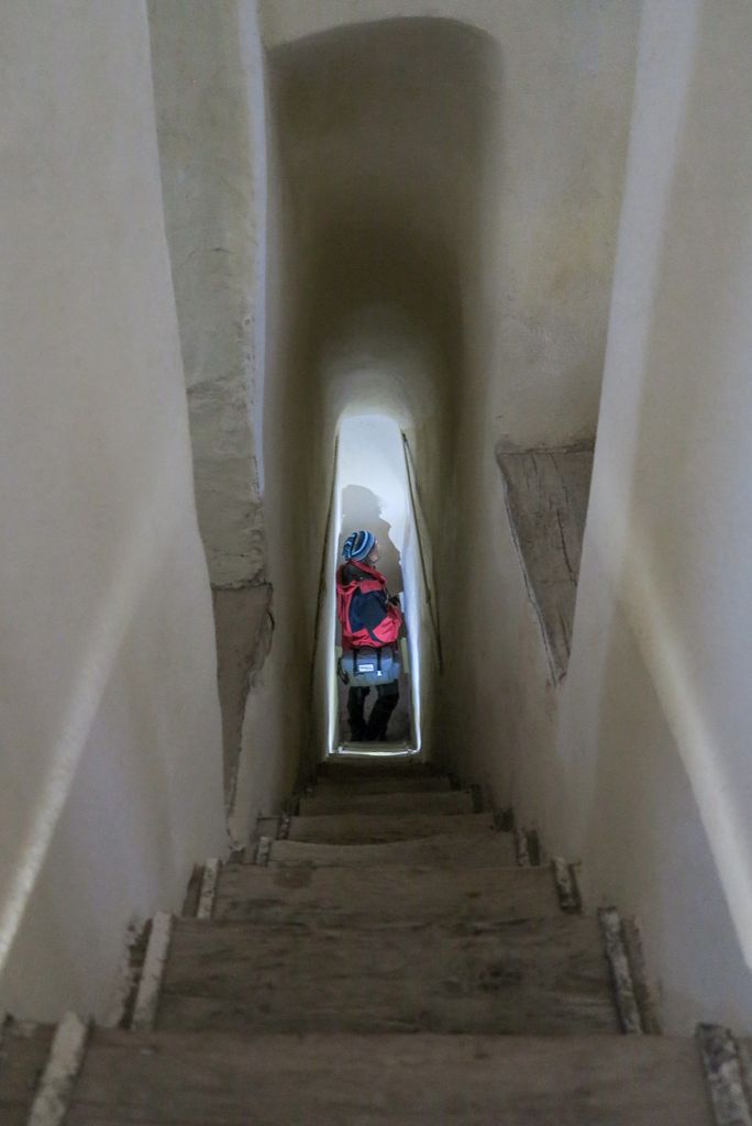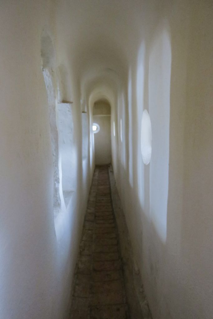 Pentru orice ar fi fost construit culoarul dintre ziduri, însă, atunci când urci scările înguste, atât de înguste încât, dacă ai umerii ceva mai largi, trebuie să mergi oarecum lateral, senzația asta de ”mistic” e prezentă la fiecare pas. În cărămida pe care calci, în ferăstruicile mici și rotunde ale zidului exterior, în ferestrele înguste ale zidului interior, în ușa de lemn care dă în turnul ce urcă, etaj cu etaj, către ceea ce pare să fi fost clopotnița. Și e ușor să-ți lași imaginația liberă, să îți creezi propria poveste legată de culoarul acela îngust dintre ziduri, care pare că face legătura cu o altă lume. Mai ales că zidurile, cuprinzându-te și dintr-o parte și din alta, ca un fel de îmbrățișare a unei entități care a fost transformată într-o construcție de piatră, nici nu te lasă să te răsucești, rapid, să vezi dacă te urmărește careva, de dincolo de semiîntunericul culoarului acela îngust, îngust. Și, dintr-odată, acel ”se pare că” ce învăluie în mister zidurile fortăreței de pe dealul de pe malul stâng al văii Crasnei capătă consistența unui adevăr pe care l-ai descoperit, acolo, între zidul din stânga și cel din dreapta. Ziduri printre care te strecori către capătul culoarului, trecând pe lângă ferestrele neregulate, parcă făcute la repezeală, prin care se vede în interiorul bisericii.