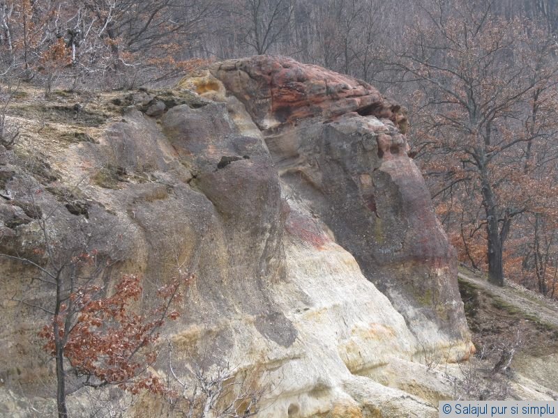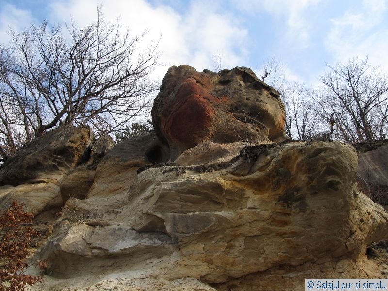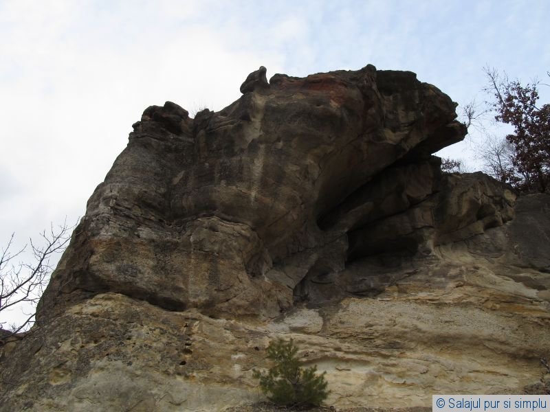Călin era chiar pe creștetul turnului sub care era gaura Buhii, iar eu sub el, cam cu vreo 10 metri, cînd îmi vine ideea să o luăm spre inima pădurii, spre interior, unde, din depărtare văzusem o piatră enormă, roșie, ce semăna cu o cască de război.
