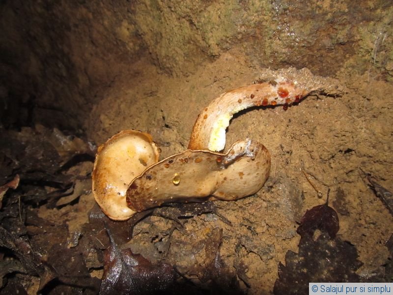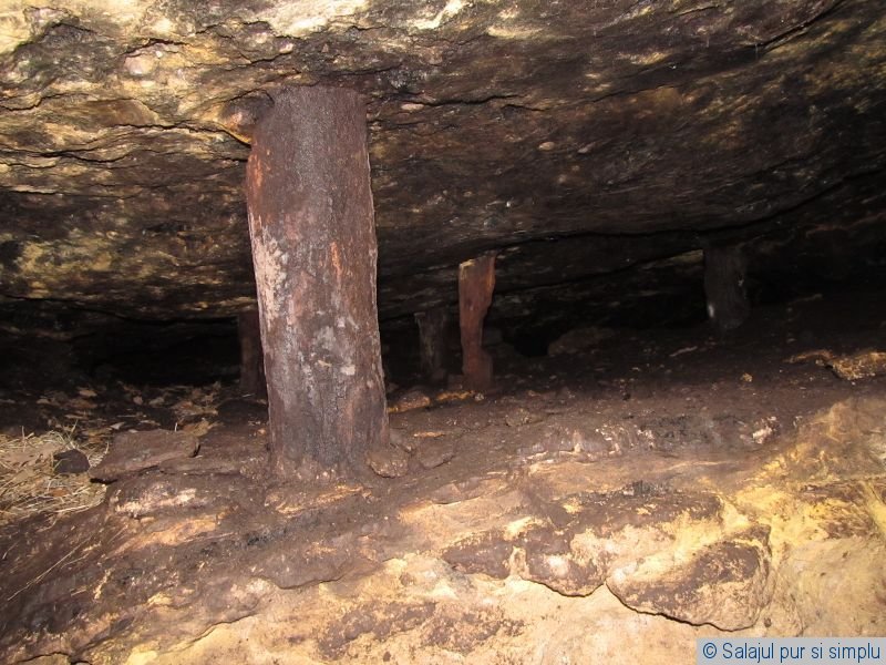 Tot nu-l văd, încă, pe Călin, iar senzația de incomoditate mi se accentuează enorm. Treptat, după cîțiva metri de tîrît, tavanul hornului începe să se înalțe, putînd să mă ridic, la început, în genunchi, iar, mai apoi, chiar în picioare, cînd ajung la un fel de aulă interioară. Călin e acolo și se uită tăcut spre tavanul care, luminat, strălucește, parcă ar fi presărat cu pietre de mină. Dar e doar reflexia luminii lanternei pe o chestie umedă și cleioasă de pe piatră, parcă am fi în interiorul esofagului unui animal mare. În dreapta noastră se deschide o nișă, cît să te poți alungi pe spate, e ca un cavou de gresie, de mărimea unei camere, iar între plafon și partea de jos observăm cîteva trunchiuri de copac, care parcă ar susține tavanul. Dar, chiar nu are nici o logică, ar trebui să fie, în partea de sus, scînduri de susținere, ceea ce nu există. Și totul pare foarte natural, în nenatural, parcă ar fi crescut o pădure în interiorul atît de grețos al lințoliului calcaros. Ici-colo dăm peste niște desene minuscule ciudate, pe ziduri, dar nu desene de alea făcute de retardații care-și lasă urma peste tot: forme ciudate de om, pătrățoase și ceva ce arată a petale de flori. Mirosul e din ce în ce mai greu, și sînt sigur că e și ceva sulf prin aer. Pereții cavoului sunt presăraţi de filoane de cărbune și de alte minerale, pe care nu le cunoaștem. Continuăm să înaintăm, cu precauție, spre adînc, cînd, după cîteva zeci de metri, galeria se închide, dar nu natural, ci văzîndu-se clar urmele unei surpări. Facem drumul înapoi, în tăcere, spre hornul de intrare, probabil că locul e atît de instabil, încît oricînd am putea fi îngropați de vii. Culmea, pe galeria strîmtă de la intrare, dăm peste niște ciuperci ciudate, mucegăite, dar care se par că mai trăiesc. Încercăm, pe cît posibil, să evităm să ne frecăm de pereții cleioși, ca acoperiți de muci fosforescenți, și ne tîrîm spre exterior.