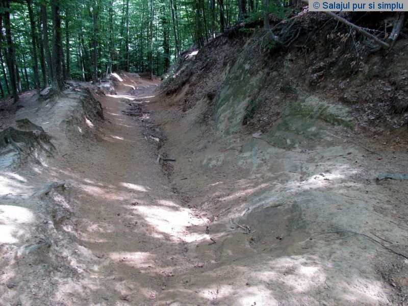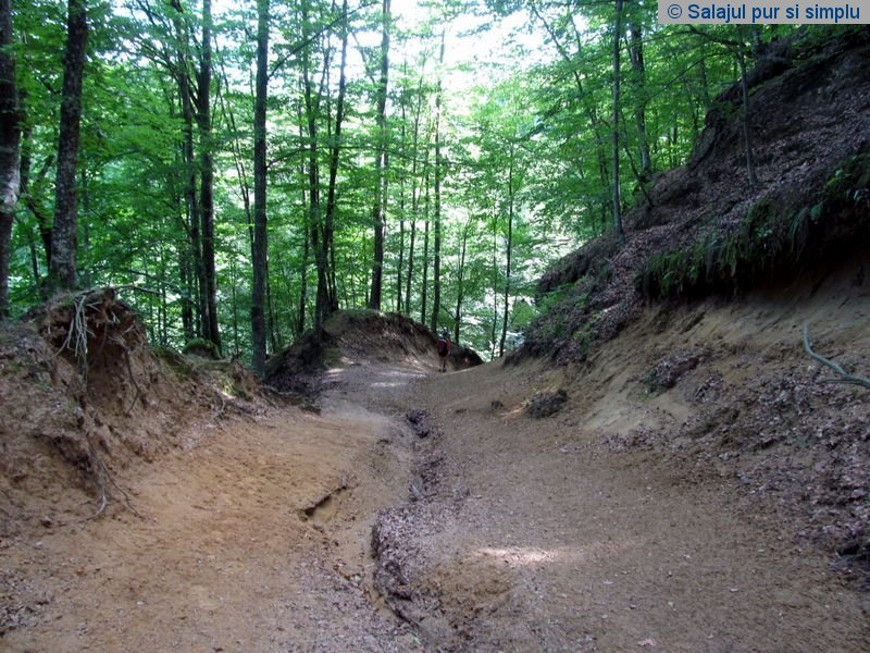 Și-i dăm așa, cu futu-i soarele și cu „hai tu Doină bolundă!”, cale de vreo 2 kilometri, cînd în dreapta noastră răsare un fel de intrînd în pădure. Evident, cu pantă în sus.