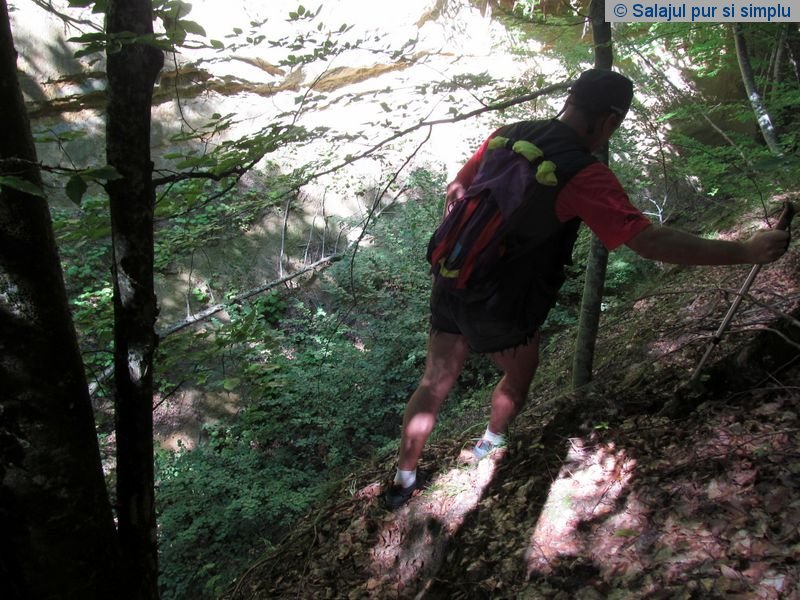 Alerg efectiv după el. Mă cațăr și eu pe primul balcon. Ne mișcăm ca pe trotuar, fără griji, cu un hău de 10 metri sub noi, doar pe o brînă îngustă și alunecoasă. Coborîm, alunecăm, alergăm în cealaltă parte, Călin urcă pe stană, o încearcă de acolo, de jos e doar un punctuleț insignifiant. Stana de sub părău. Așa îi zic localnicii. Una dintre minunile Sălajului. Nemaivăzut. Necunoscut. Ți-am zis, uriașii sînt timizi.