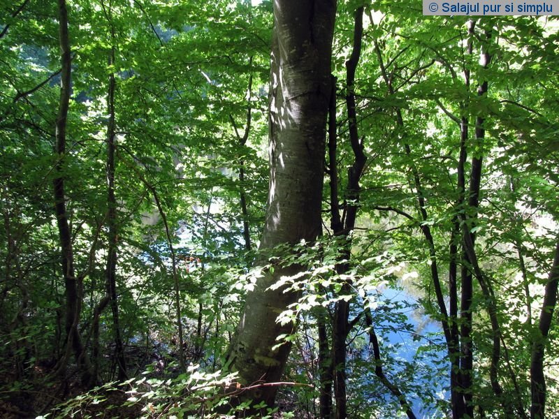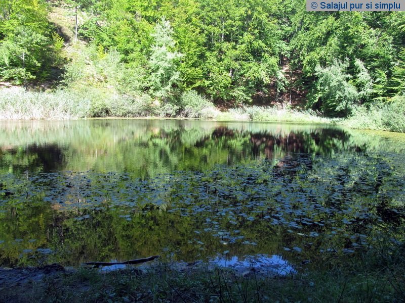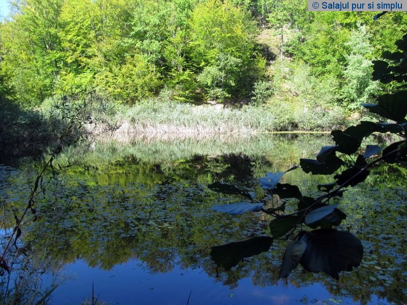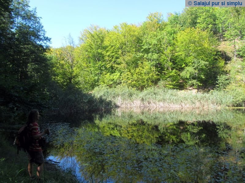 Și dăm peste nea Viorel, care a ieșit după hribe. „Mi-a fost dor de un pic de plimbat prin pădure”, zice el. Stabilim să ne întîlnim în centrul satului, după ce găsim tăul, ca să ne ducă la peștera spre care se merge chiar din curtea lui. Ne continuăm drumul și, incredibil, un pic jos de noi, își scoate vălul un ochi de apă, de aici, de sus se vede albastru, așa ceva am mai văzut la Lacul Sf. Ana, cînd am făcut traseul de munte. E ceva ce te înalță.