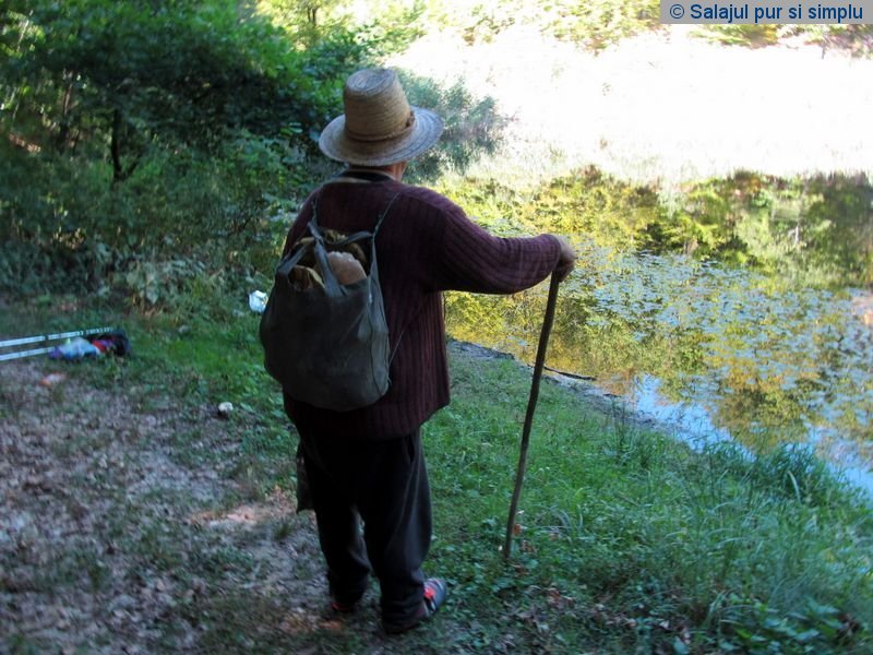 Între timp, apare și nea Viorel, un alt localnic, cu o altă plasă plină de hribe. Măi, eu chiar nu știu pe unde le găsesc. Trebuie să ai nas pentru așa ceva. Noi am bătut zona o juma de zi și n-am văzut o hribă.