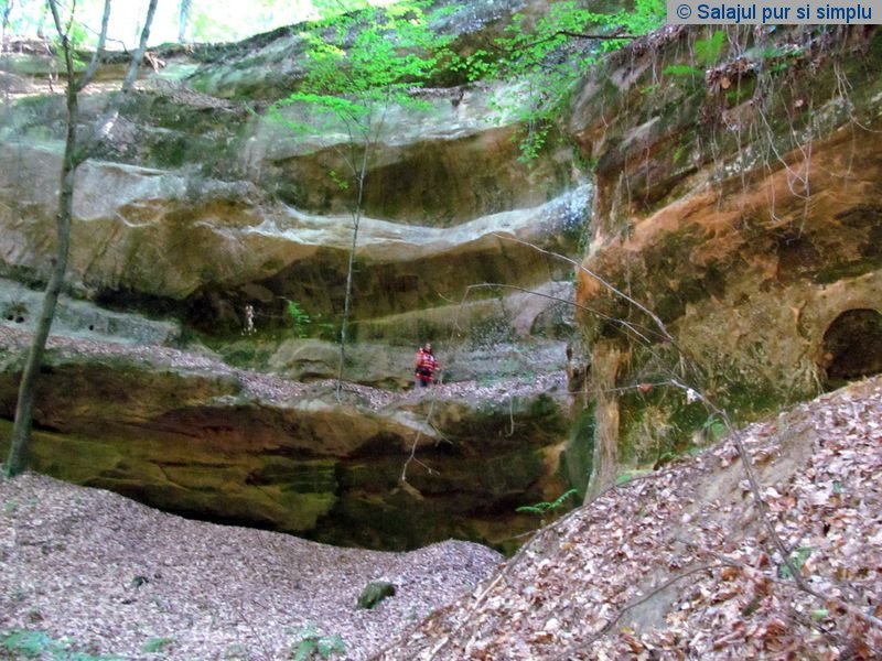 La fel se intră și aici. Apoi, se deschide arcada. Imensă. Cu o arenă de vreo 50-70 metri diametru. Un arc de cerc de circa 220 de grade. Te împresoară. Zidurile înalte de circa 40 de metri. Cu trei-patru balcoane, ce merg de-a lungul său. Cu un loc de cascadă în evantai, cînd plouă. Cu nenumărate abriuri. Ne simțim ca niște copii ce am primit o jucărie nouă. Alerg dintr-o parte în alta, încercînd să prind unghiuri potrivite pentru poze. Călin deja e cățărat pe un balcon, deși e chiar periculos, totul e sub o perdea de frunze, poți aluneca în orice moment. Cui îi pasă?
